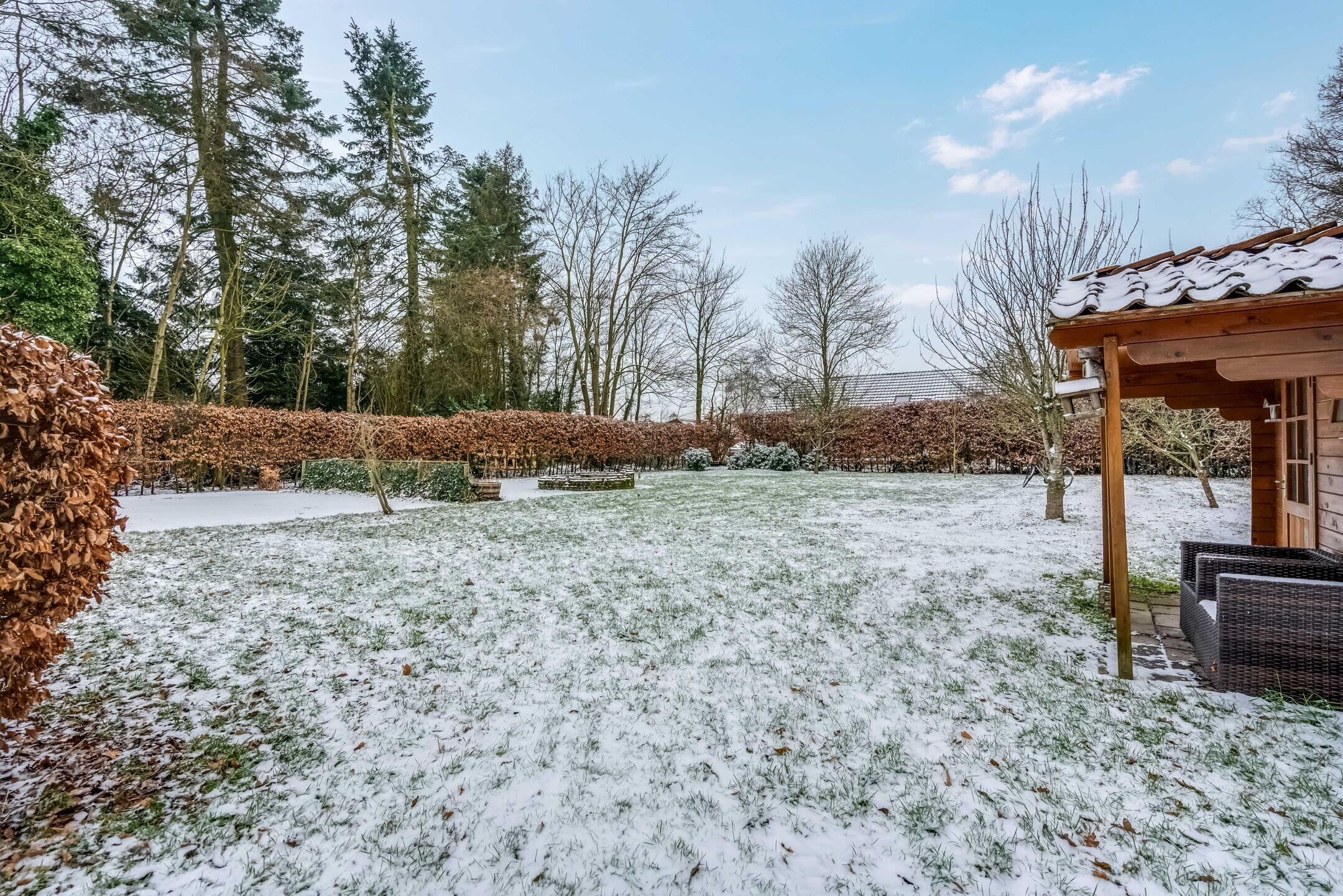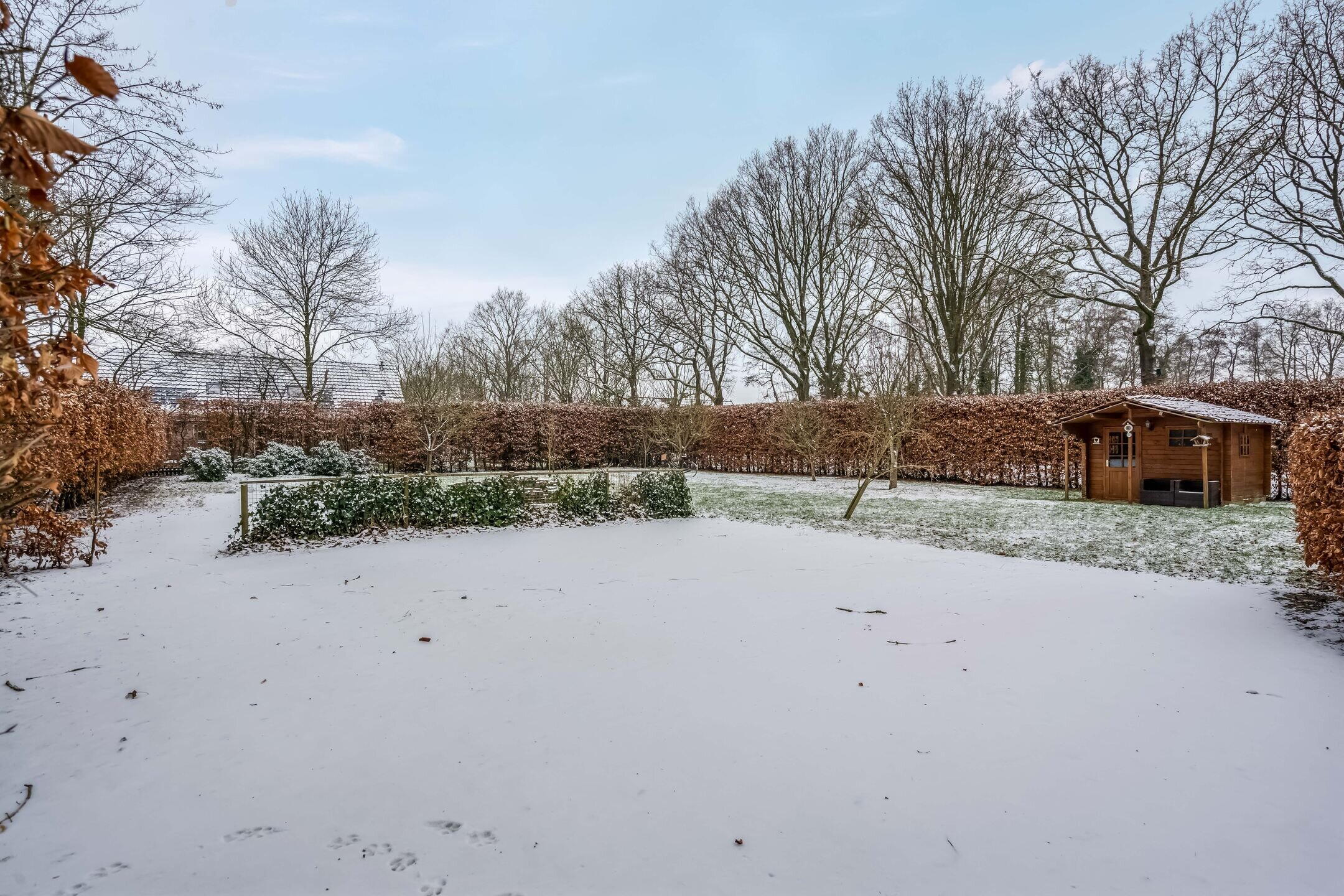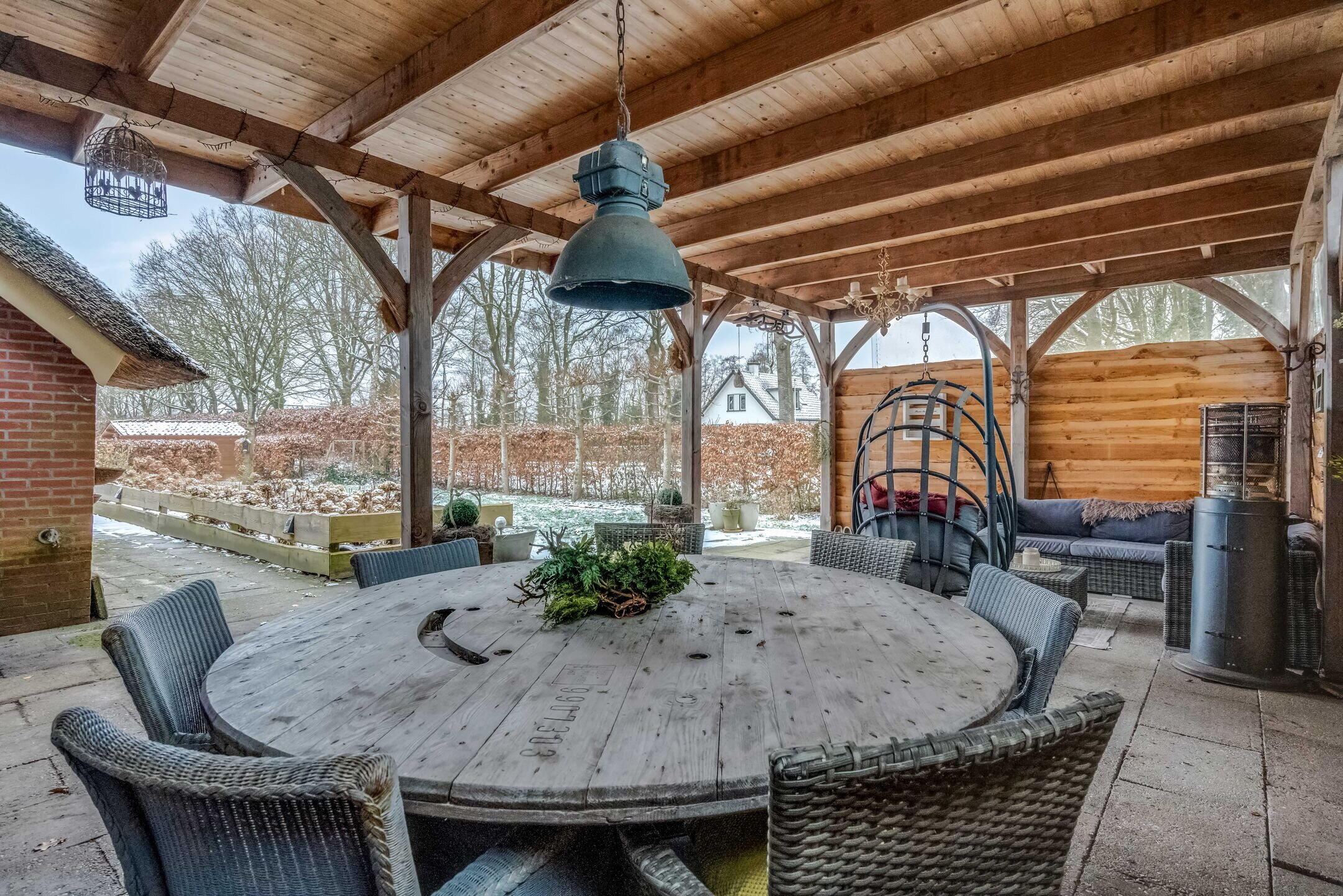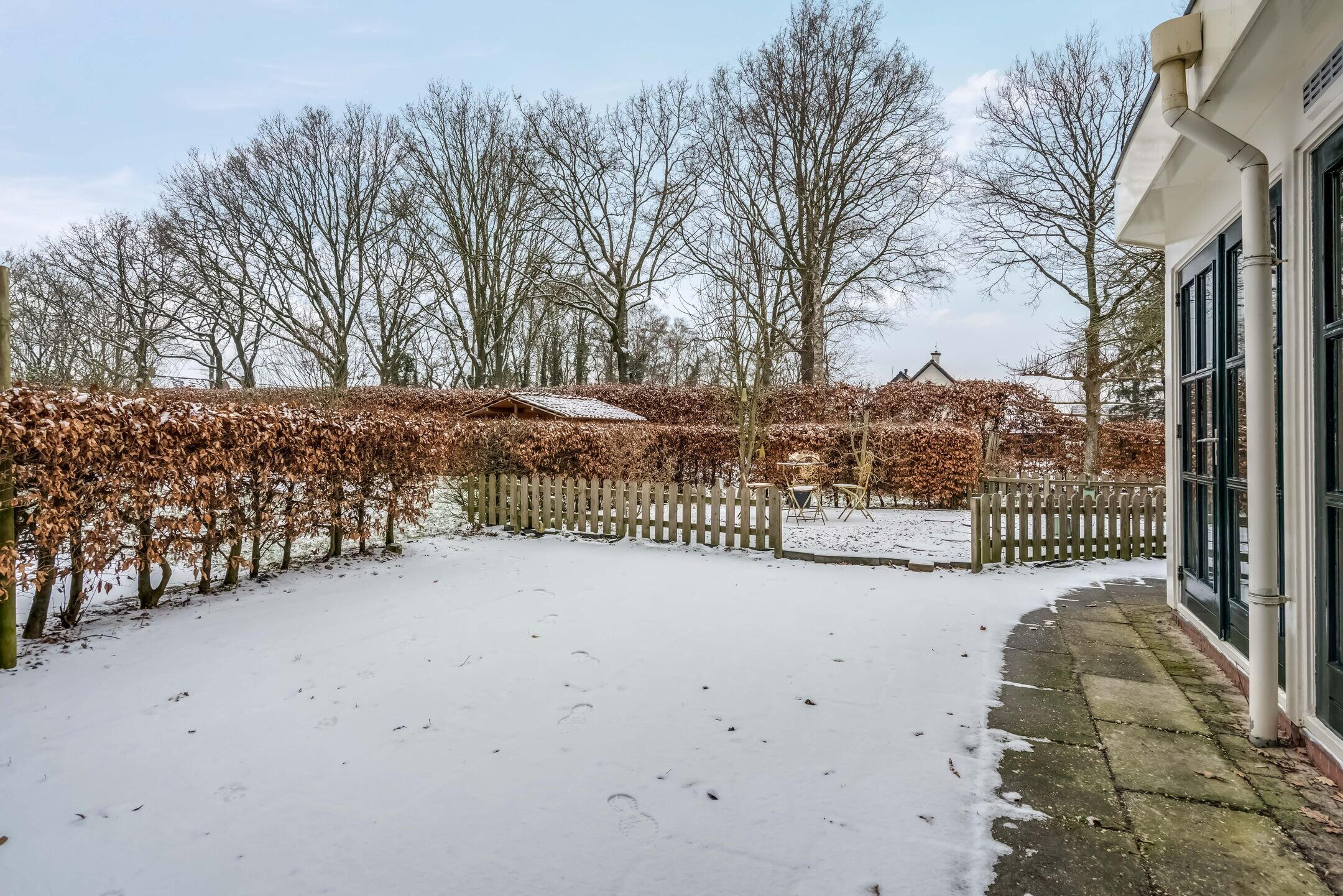 De grote tuin met fruitbomen is volledig omsloten door een hoge beukenhaag, wat zorgt voor optimale privacy. Hier kunt u in alle rust genieten van het buitenleven tot in de late avonduren.