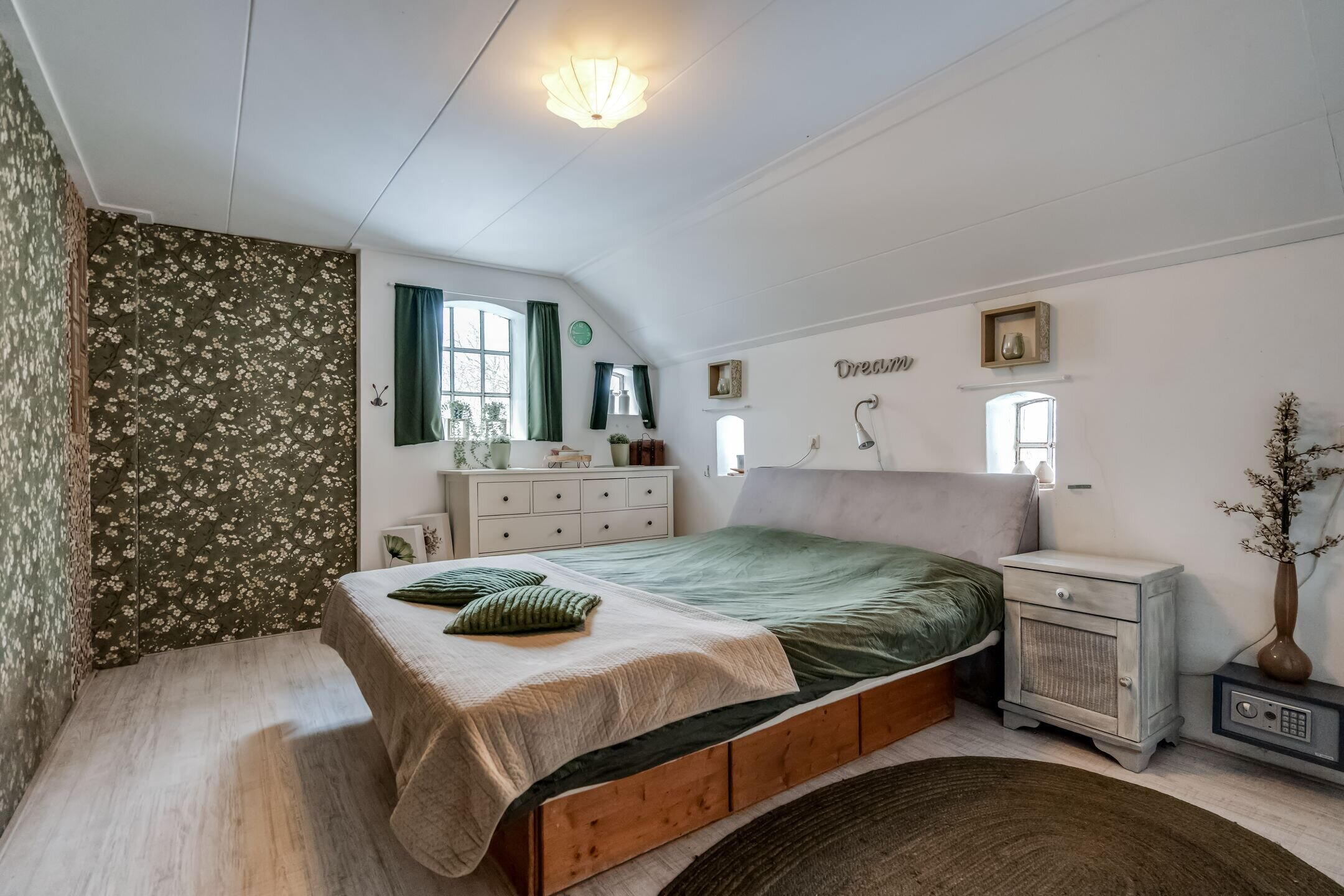 De royale schuur is vanuit de woning bereikbaar van circa 94 m² is maar liefst 16 meter diep en beschikt over twee grote overheaddeuren en een vaste trap naar een ruime bergzolder. De schuur is gebouwd met spouwmuren en voorzien van een geïsoleerd dak.